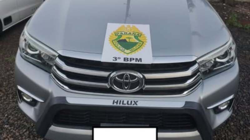 Policia Militar recupera na zona rural de Planalto camionete avaliada em 300 mil reais. A equipe da Patrulha Rural pós receber informações anônimas sobre um veiculo suspeito, onde após buscas, foi localizada em uma propriedade abandonado o referido automóvel, a qual, no momento ostentava placas falsas, porém após consulta aos sistemas, através da numeração, foi constatado tratar-se de uma I/Toyota Hilux SWDMDA4JD, emplacada em SP, com registro de Furto em Balneário Camboriú/SC, no dia 13/07/2024, O veiculo foi removido e encaminha para a Delegacia de policia Civil de Capanema para os procedimentos pertinentes.