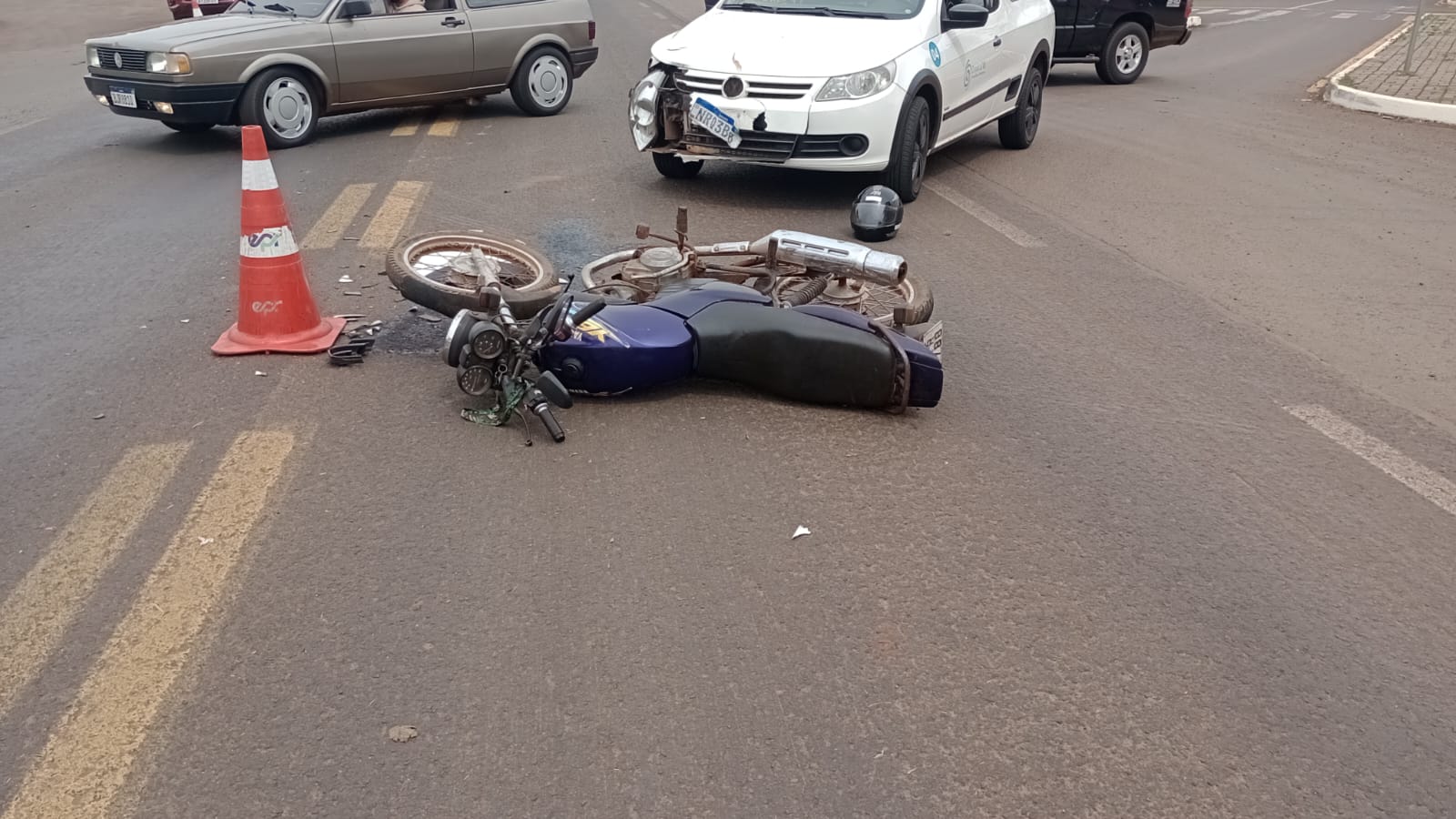 O acidente envolveu uma motocicleta, conduzida por um homem que foi atendido no local e encaminhado ao Hospital Regional, e uma VW Saveiro, cujo motorista não sofreu ferimentos.