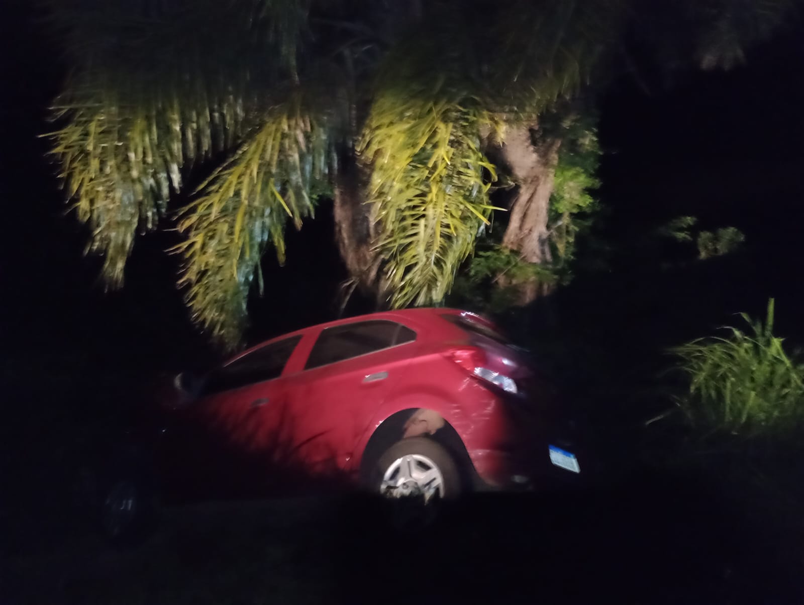 O Onix saiu da pista após o impacto e teve grandes danos materiais.
