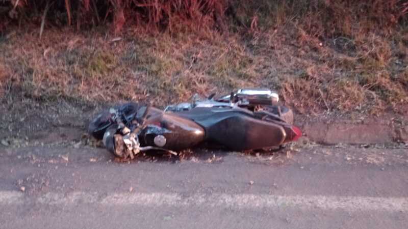 O condutor da motocicleta sofreu ferimentos leves e foi socorrido pelo Corpo de Bombeiros.