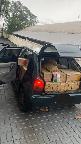 Na vistoria do automóvel, os policiais encontraram diversas caixas de isqueiros, totalizando aproximadamente 15.840 unidades, todas sem comprovação fiscal.