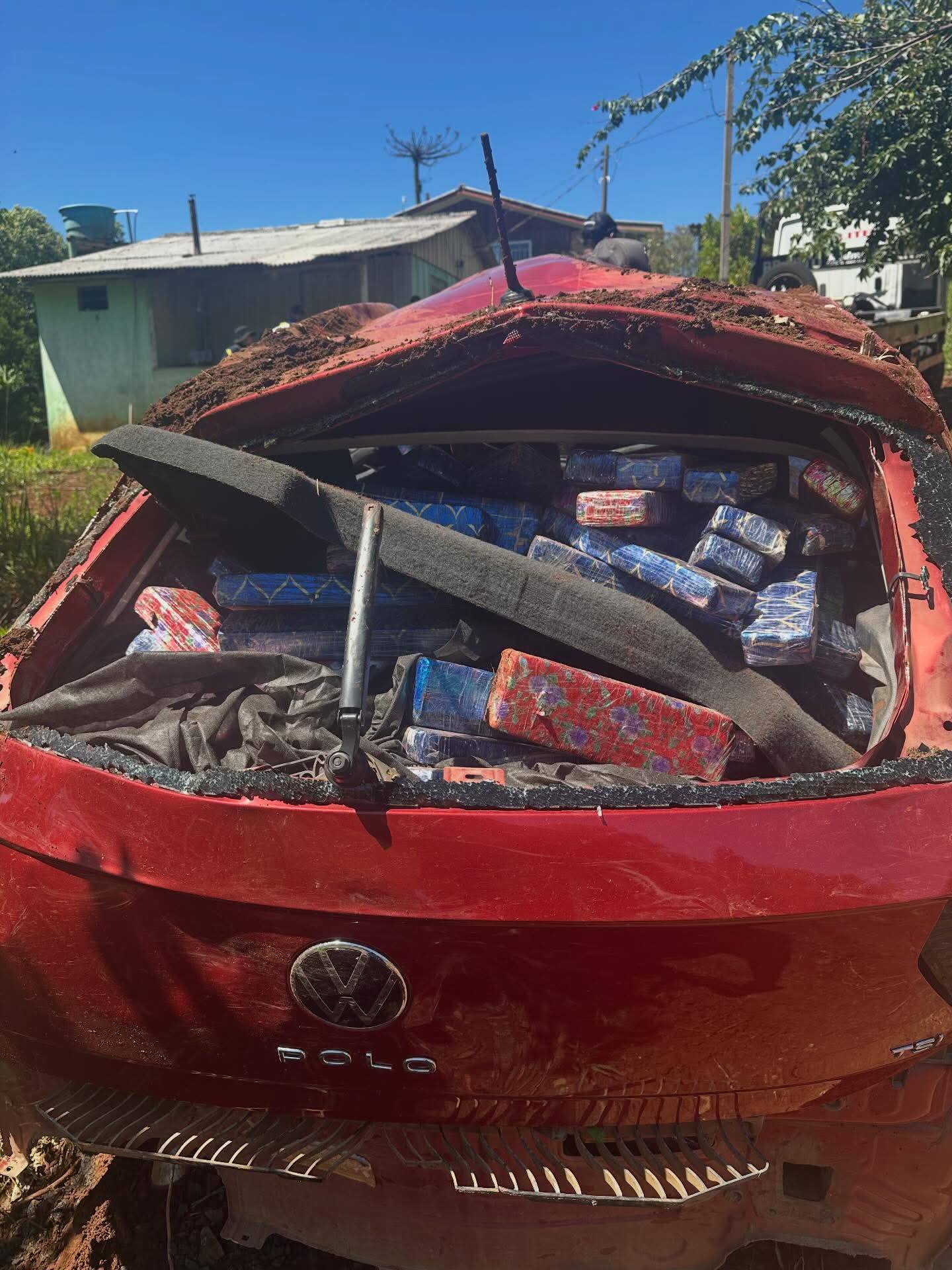 A perseguição durou cerca de 3 quilômetros, até que o condutor perdeu o controle da direção, saiu da pista e capotou o veículo. Segundo a PRF informou ao Notícias Coronel e ao Nata News, o carro estava completamente carregado com diversos tabletes de maconha.