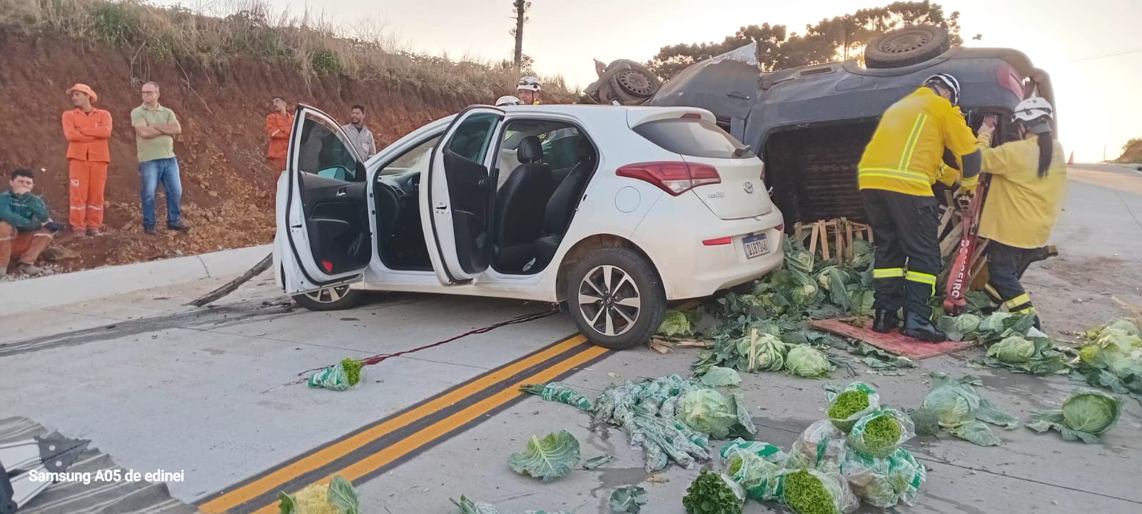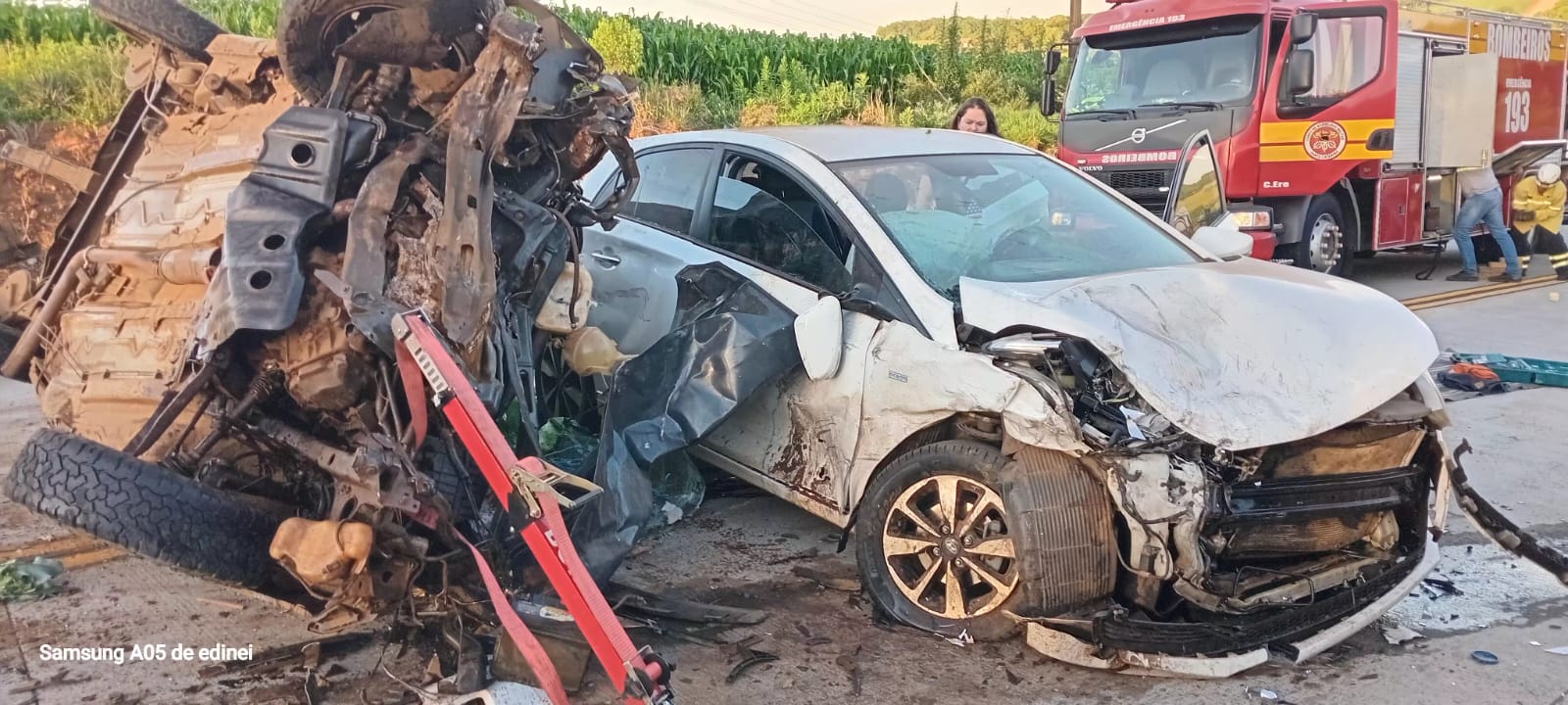 Uma das vítimas que estava na caminhonete ficou encarcerada e precisou ser retirada pelas equipes de socorro. No HB20, os condutores também receberam atendimento ainda no local.