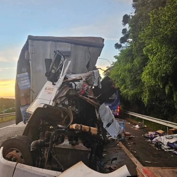Grave acidente entre ônibus e caminhão deixa uma vítima fatal e feridos na BR-386