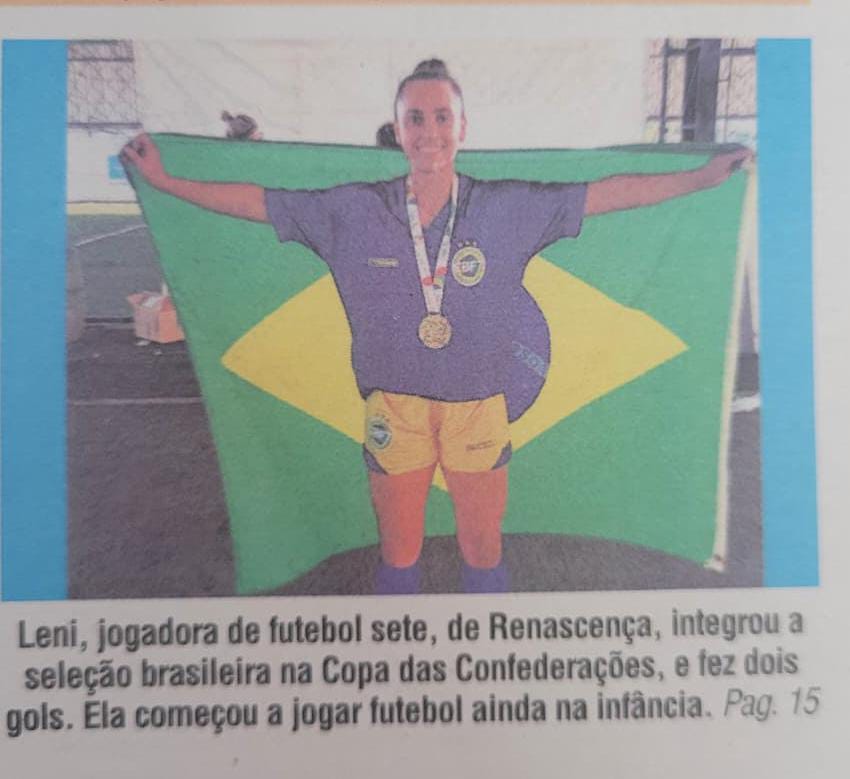 Natural de Renascença, a atleta Leni Maira, de 35 anos, moradora da cidade de São João, realizou um sonho de infância ao ser convocada para defender a Seleção Brasileira de Futebol Sete. A jogadora integrou o elenco campeão da Copa das Confederações, disputada no fim de novembro, em São José dos Pinhais (PR).