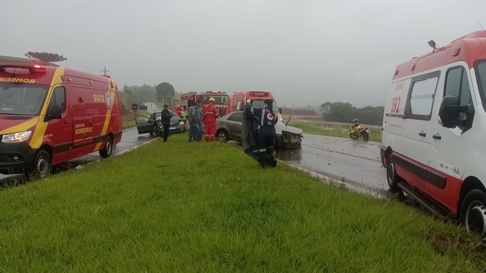 O Corpo de Bombeiros atendeu a ocorrência, sob coordenação do sargento Vondres, com o encaminhamento de três pessoas para atendimento médico. A Polícia Rodoviária Estadual esteve no local para organizar o trânsito e lavrar o boletim de ocorrência.