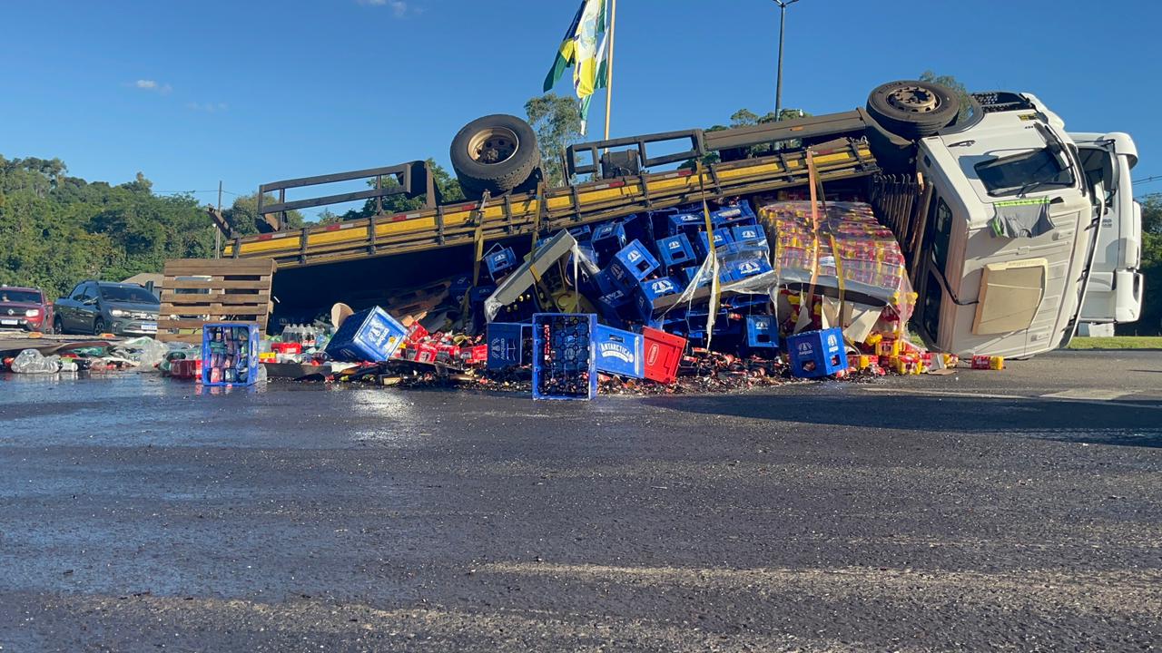 Com o tombamento, a carga de bebidas se espalhou pela pista, provocando a interdição parcial de uma das vias e exigindo atenção redobrada dos motoristas que trafegavam pelo trecho.