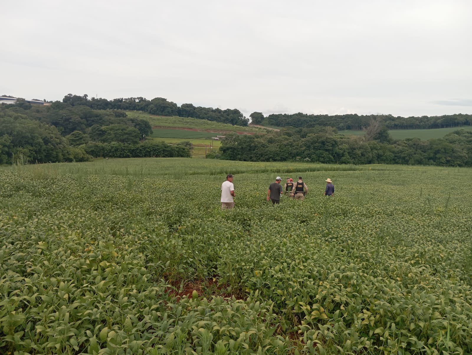 De imediato, a equipe policial deslocou-se até o local indicado, onde populares relataram que o suspeito havia se evadido, tomando rumo ignorado e adentrado em uma lavoura de soja, nas imediações do Cemitério Municipal.