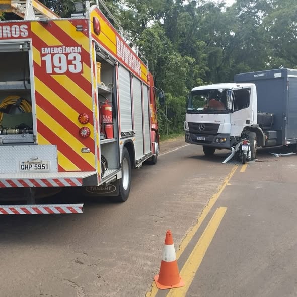 Motocicleta fica “cravada” em caminhão após grave acidente na BR-163 em Itapiranga