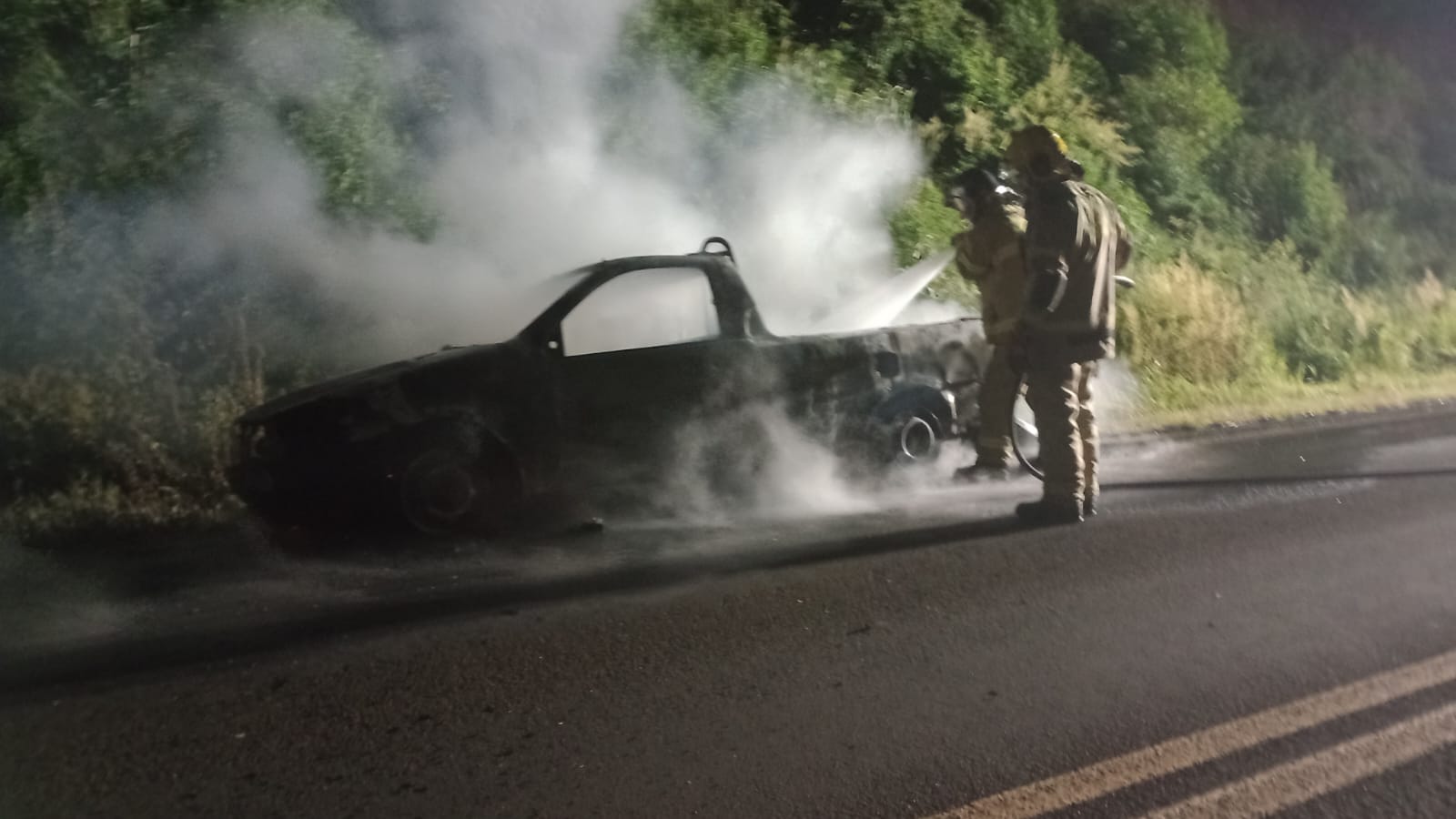 De acordo com informações repassadas pelo sargento Nascimento, do Corpo de Bombeiros, a equipe foi acionada após receber a informação de que um veículo Fiat Strada estaria em chamas às margens da rodovia. As equipes se deslocaram rapidamente até o local do sinistro.