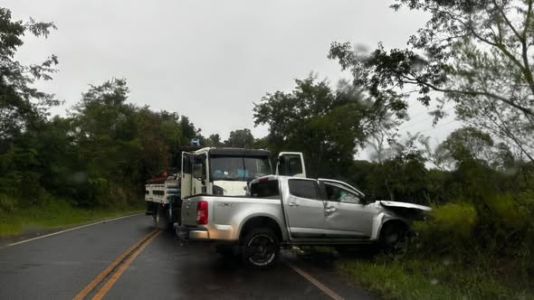 A colisão envolveu uma caminhonete Chevrolet S10, com placas Mercosul, e um caminhão Cargo 1719. Na caminhonete estavam um homem e uma criança, que foi socorrida por terceiros e encaminhada a uma unidade hospitalar antes da chegada das equipes de resgate.
