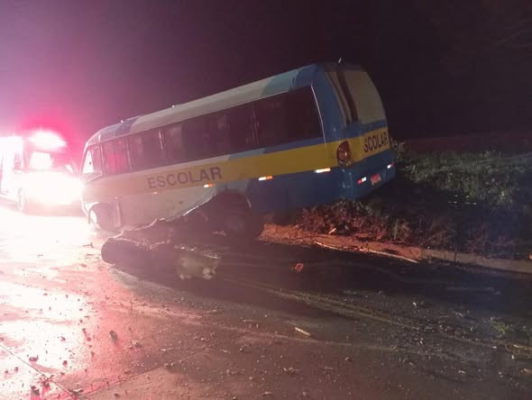 No km 2 da rodovia, os bombeiros constataram que um micro-ônibus, com placas do município de São Domingos, colidiu contra o pinheiro que havia caído sobre a pista, ficando parcialmente imprensado. O condutor não se encontrava no local no momento da chegada das equipes e, conforme informações repassadas, não sofreu ferimentos.