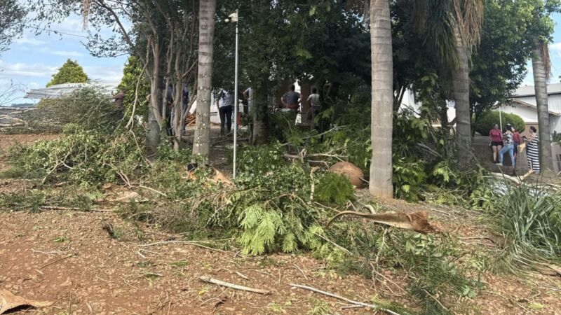 As imagens enviadas pela prefeita mostram a situação nas localidades por onde passaram os ventos fortes, evidenciando os estragos causados pelo temporal.