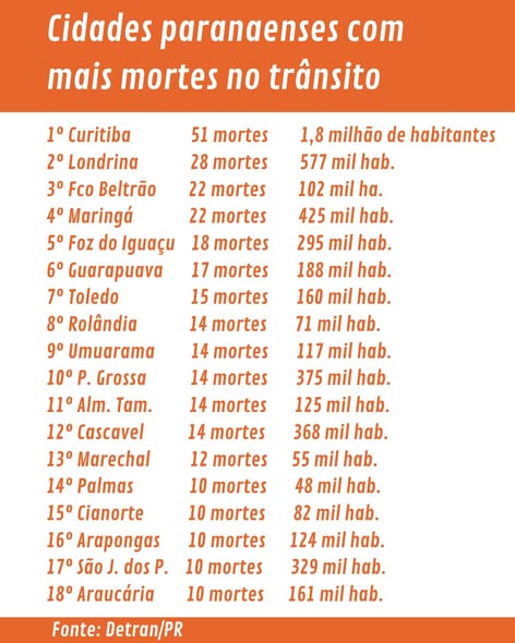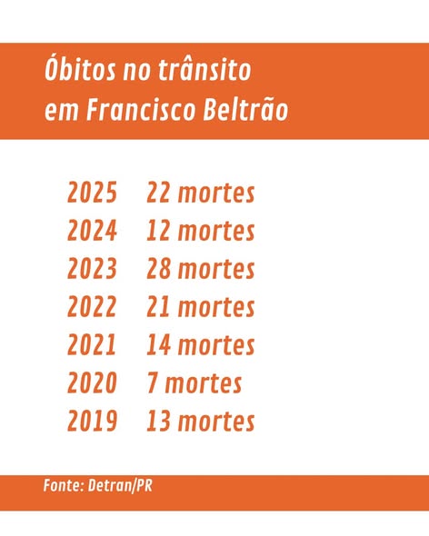 O município de Francisco Beltrão fechou o ano de 2025 com um total de 1.789 acidentes de trânsito, conforme números do Detran do Paraná. O dado coloca a cidade como a terceira com trânsito mais letal no Estado. Dados locais indicam que o número de vítimas fatais é ainda maior.