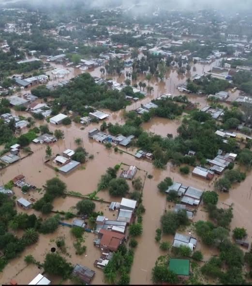 As imagens mostram ruas, casas e áreas inteiras tomadas pela água, evidenciando a força do temporal que atingiu a região. Até o momento, autoridades locais avaliam os danos provocados pelas enchentes e a situação das famílias afetadas.