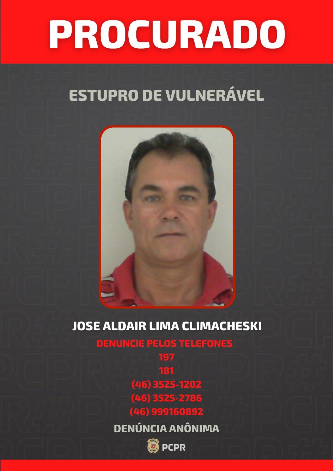 A Polícia Civil do Paraná (PCPR) está à procura de um homem, de 57 anos, condenado pelo crime de estupro de vulnerável, em Marmeleiro, no Sudoeste do Estado.
