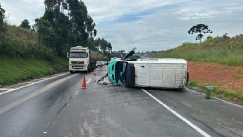 Ambulância tomba na BR-277 e enfermeira fica ferida