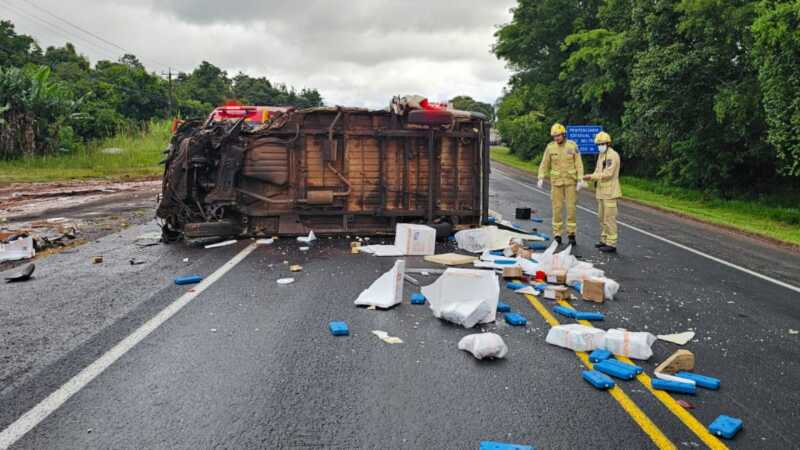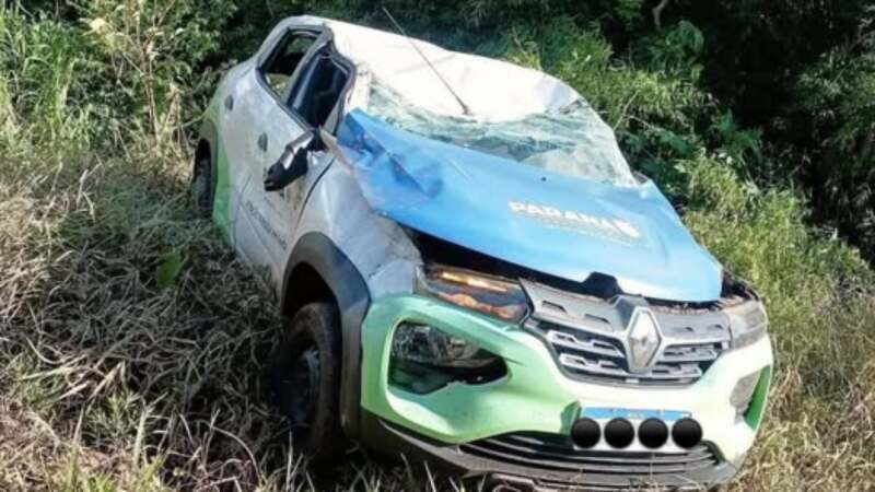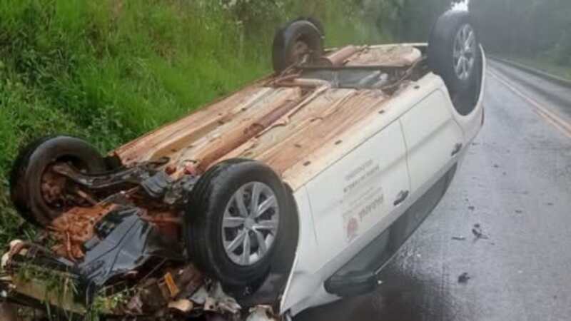 Veículo da Saúde capota na PR-180 em Marmeleiro