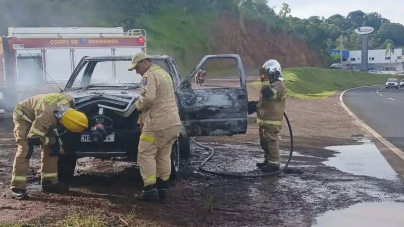 CAMIONETE É DESTRUÍDA POR INCÊNDIO NA PR-483 EM FRANCISCO BELTRÃO