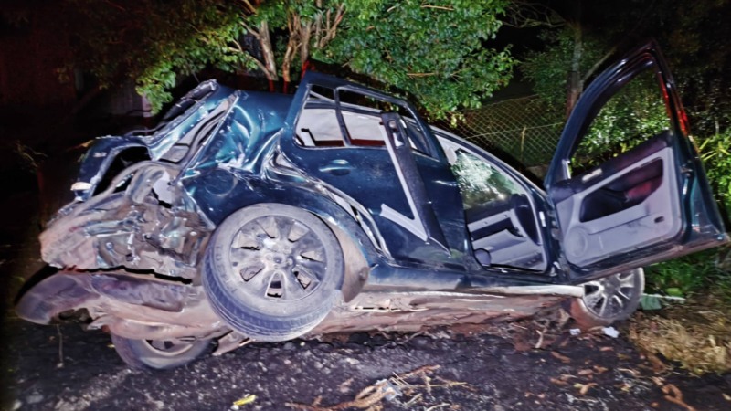 Jovem morre e outro fica gravemente ferido após carro bater contra poste no Centro de Toledo
