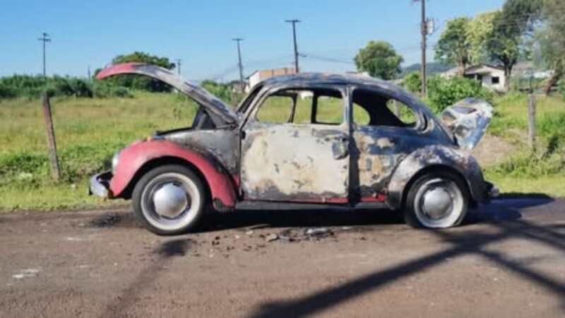 Fusca é destruído pelo fogo em Francisco Beltrão