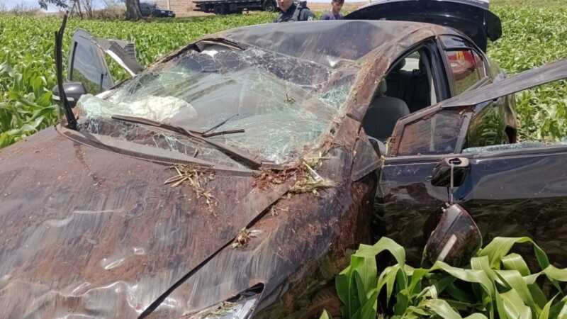 Veículo com quatro pessoas capota e cai em lavoura de milho em Marmeleiro