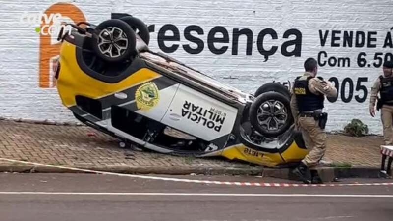 Viatura da Polícia Militar capota após colisão com carro em Cascavel