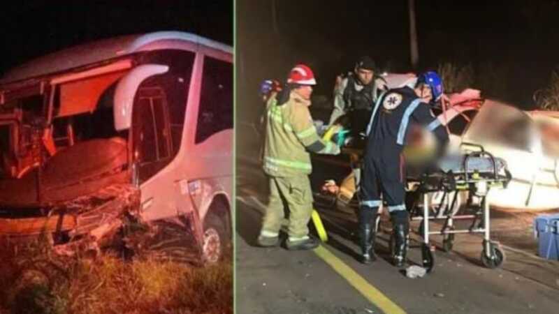 Colisão entre ônibus e carro deixa cinco mortos na PR-490, entre Francisco Alves e Altônia